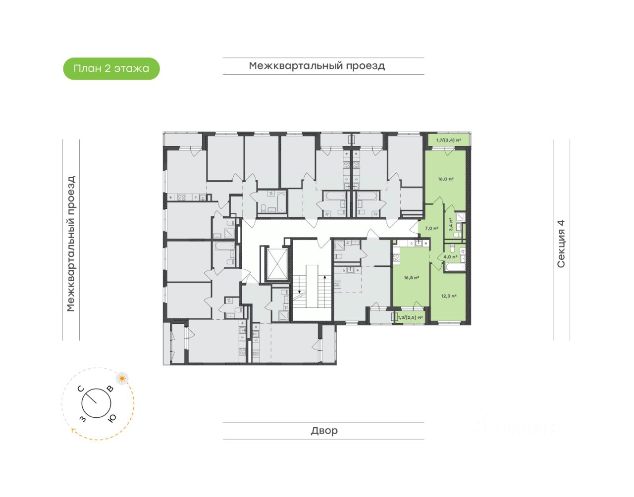 Просторная евро-планировка с окнами на две стороны света — идеальное решение для семьи, ценящей свет и пространство.