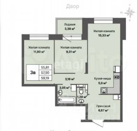 - Просторная кухня-гостиная 20,3 кв.м., и две отдельные уютные комнаты.