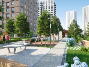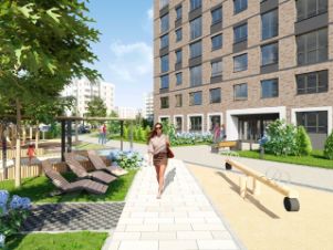 В проекте жилого комплекса мы предусмотрели большое количество детских и спортивных площадок, зеленую аллею для прогулок с элементами ландшафтного дизайна, широкие дворовые проезды, новый, расширенный пакет системы "Умный дом".