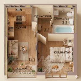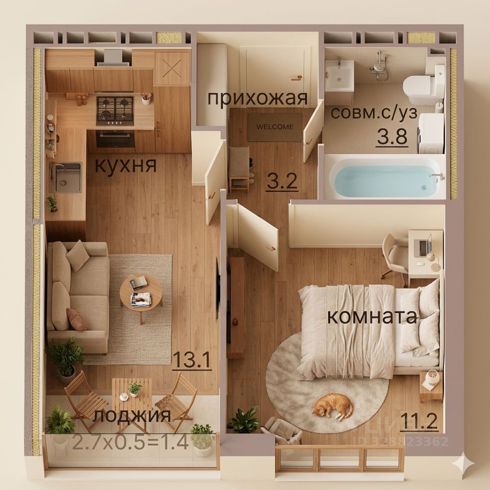 • общая площадь 31,2 м² + теплый балкон