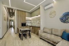 Дизайнерский ремонт выполнен с безупречным вкусом, используются качественные материалы и продуманные решения, что гарантирует ощущение уюта и премиальности. Вы сможете заселиться сразу после покупки, ни во что не вкладываясь.