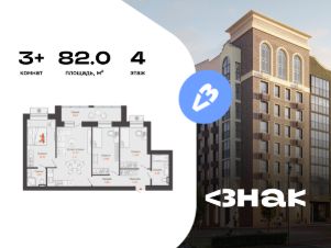 В новом жилом комплексе комфорт-класса "Знак" продается 3-комнатная квартира площадью 82.00 кв. м с отделкой white box. Квартира находится на 4 этаже 8-этажного корпуса 1. Девелопер проекта - федеральный застройщик "Железно".