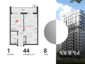 Продаётся 1-комнатная квартира квартира в 10 минутах от центра Ижевска, ул Холмогорова, площадью 44.00 кв. м. Квартира находится в жилом комплексе бизнес-класса "МИРЫ" от федерального застройщика "Железно".