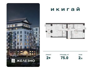 Продается 2-комнатная квартира площадью 75.00 кв. м с предчистовой отделкой. Квартира находится в жилом комплексе комфорт+ "Икигай" от федерального девелопера "Железно".