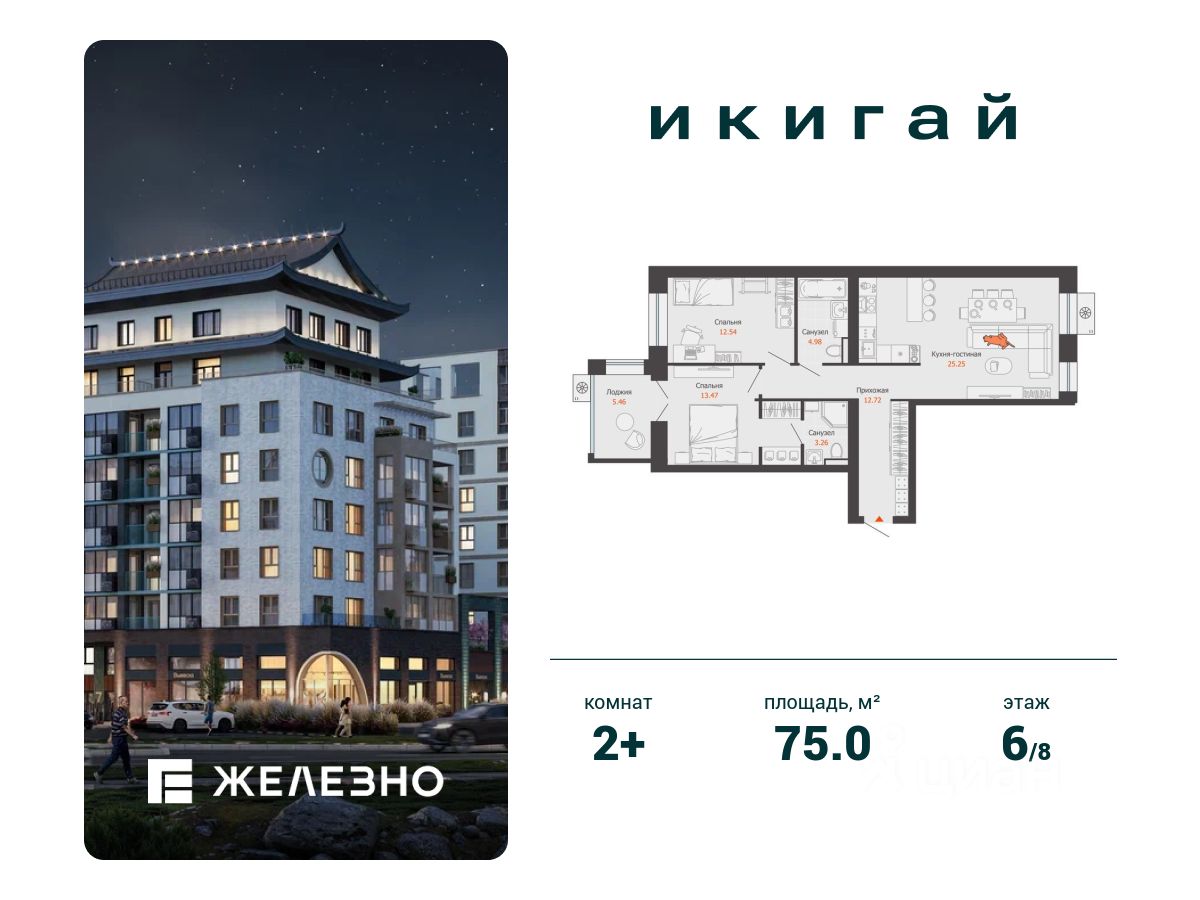 Продается 2-комнатная квартира площадью 75.00 кв. м с предчистовой отделкой. Квартира находится в жилом комплексе комфорт+ "Икигай" от федерального девелопера "Железно". "Икигай" - это камерный жилой квартал, вдохновленный эстетикой Японии. Цветочные сады, озеленение фасадов, природный камень в отделке и настоящий дом-пагода. Уникальное сочетание традиций, современности и уюта • теперь в Ижевске. Архитектура Средняя этажность, соразмерная человеку Экологичный керамический кирпич Природные оттенки экстерьера Мягкие пастельные тона, благоприятно влияющие на психологическое состояние резидентов Зеленый мини-город Просторный двор площадью 15 ГА, закрытый от автомобилей и посторонних Многоуровневое озеленение Вишневый сад с именными деревьями Фитосад и чайные домики Оранжерея на крыше Восточный зимний сад с питьевым фонтанчиком Лесные тропинки Благоустройство • Концептуальное лобби в стиле Джапанди • Центральная аллея и прогулочный променад • Площадки для мероприятий и праздников • Тихие уголки для йоги и медитаций • Игровые комплексы для детей и подростков • Протяженные велодорожки Окружение • Продуктовые магазины, бытовые службы, кафе, рестораны • Торговый центр, спортивные и творческие секции