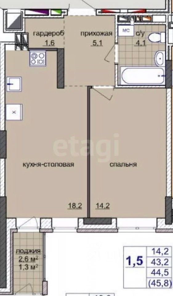 - Просторная кухня-гостиная — 18,2 м² (идеально для семьи и встреч с друзьями)