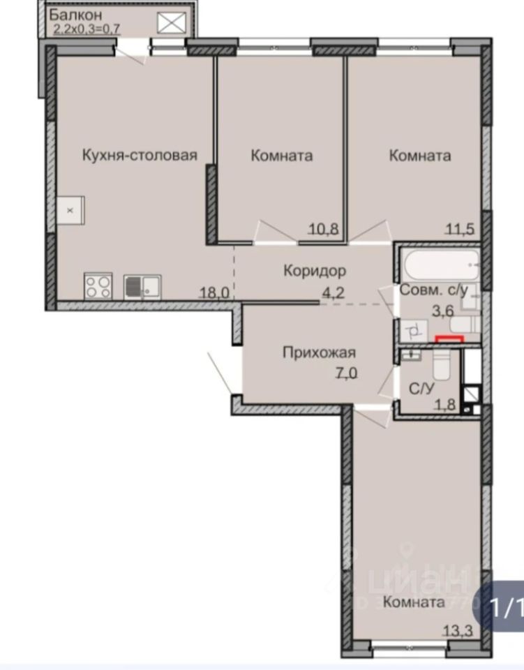 Удобная планировка предусматривает: три изолированные комнаты, просторная кухня-столовая.