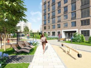 В проекте жилого комплекса мы предусмотрели большое количество детских и спортивных площадок, зеленую аллею для прогулок с элементами ландшафтного дизайна, широкие дворовые проезды, новый, расширенный пакет системы "Умный дом".