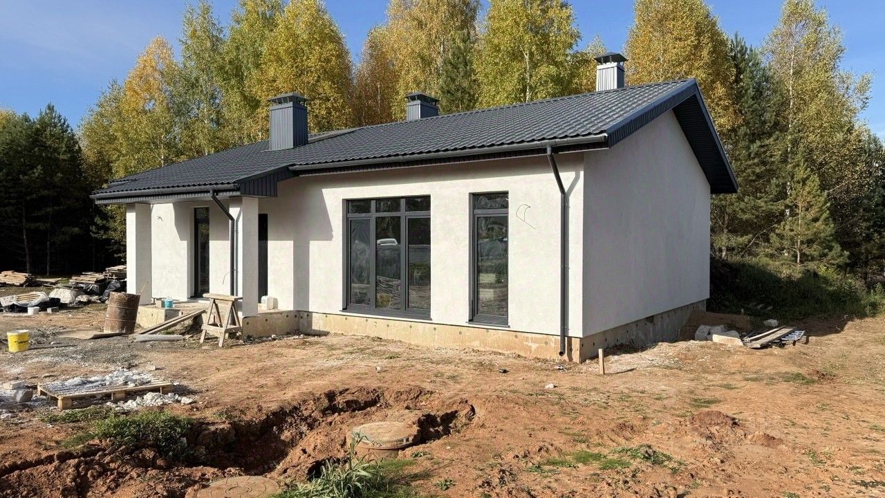 Дом готов к проживанию с предчистовой отделкой: отштукатурены стены, стяжка с теплыми полами, отделка оконных проемов, радиаторы и разводка всей электрики. С подведенной в дом водой и электричеством. С централизованным водоснабжением и выгребной канализацией с переливом.