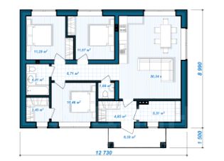 Уютная панировка для дружной семьи. Просторная кухня-гостиная на два больших окна на две стороны. Три комфортные спальни. Два санузла. Две гардеробные, в комнате и прихожей. В котельной выделено место для прачечной.
