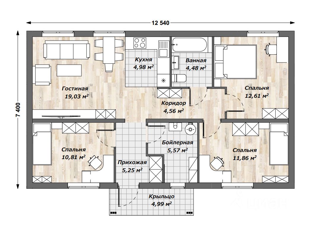 Продаем одноэтажный теплый и современный дом с планировкой, которая учитывает возможность сделать террасу, есть выход из гостиной во двор.