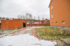 Тротуары выложены качественной плиткой, а забор из кирпича с автоматическими воротами придает участку завершенный вид.