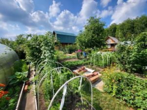 • Сад и огород: На участке растут виноград, жимолость, яблоня, вишня, малина, ежевика, а также множество клубники и земляники Виктории.