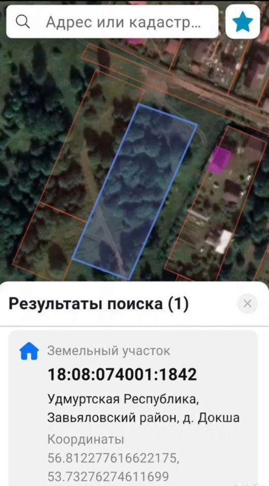 Продаётся очень хороший участок площадью 23 сотки в деревне Докша, расположенный в конце улицы. Удалённость от дороги обеспечивает тишину и спокойствие. Это тихое и комфортное место идеально подходит как для постоянного проживания, так и для дачного отдыха. Дорога отсыпана, в зимний период осуществляется уборка. Вдоль улицы проходят газопровод и электроснабжение. Регулярно курсирует автобус из Ижевска, также имеется продуктовый магазин. ВРИ: ЛПХ (приусадебный, код 2.2). Кадастровый номер 18:08:074001:1842