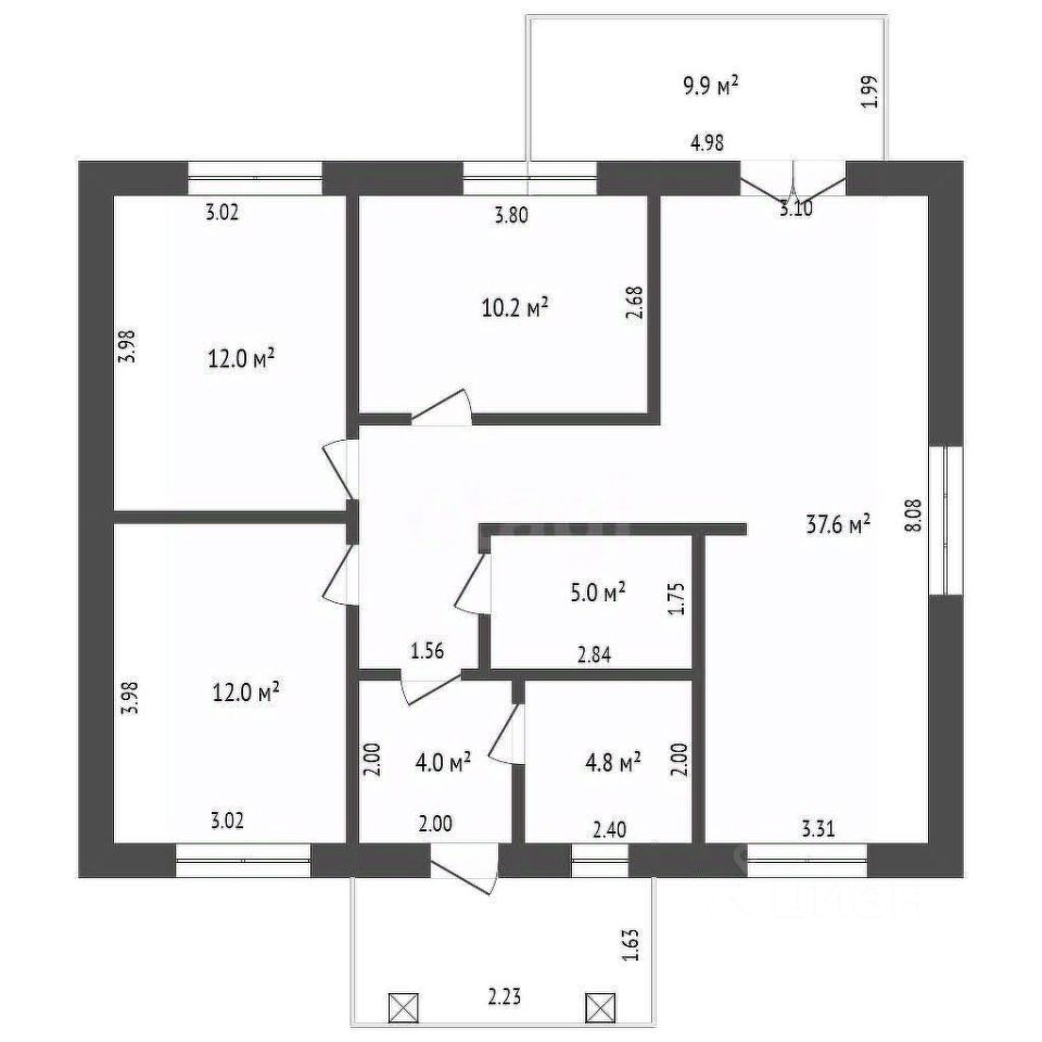 Планировка дома продумана для комфортного проживания : просторные комнаты, большая кухня - гостиная, санузел, прихожая, терраса. Окна ориентированы на южную сторону, обеспечивая прекрасное естественное освещение в течение всего дня. Дом продается в черновой отделке, что позволяет вам реализовать вашу собственную, уникальную идею дизайна. Все необходимые коммуникации уже подведены: электричество, вода (скважина), септик.