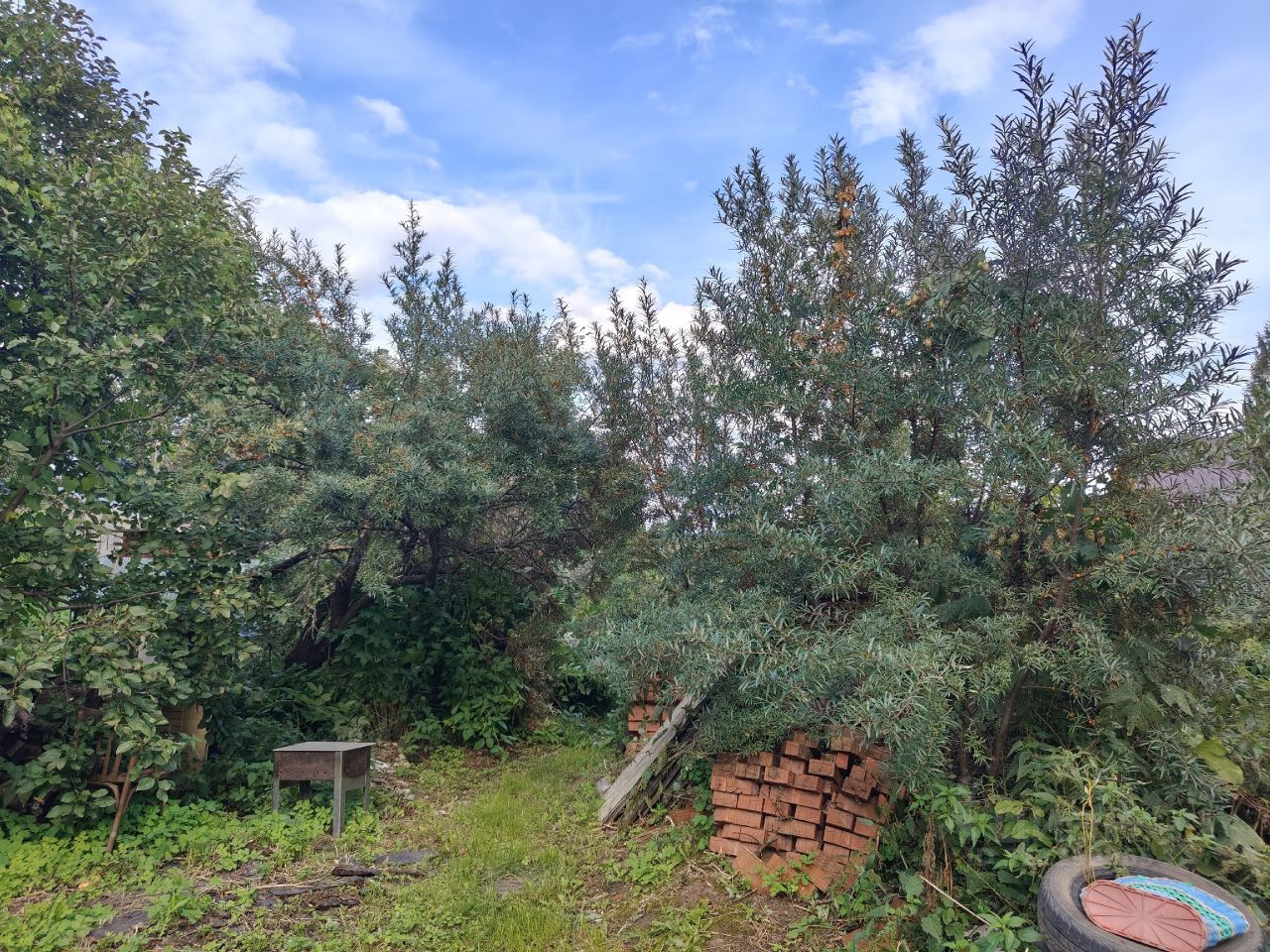 Большая часть участка ровная, имеется небольшой склон. Плодородные земли, множество посадок: 3 яблони, слива, вишня, облепиха, малина, рябина (обычная и черноплодная), клубника, земляника, сирень, черемуха.