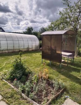 Продам огород в СНТ Андан, по Шабердинскому тракту. На 8 -ми сотках участка есть: дом с верандой, баня с предбанником, гараж, хоз. постройки, туалет, 2 теплицы, беседка. Вода разведена по участку, заведена в дом и баню. В доме пластиковое окно, печь, большая веранда на которой располагается кухня и комната. Отапливаемая печью комната около 12 кв.м., веранда 23 кв.м, баня 5 кв.м. Так же есть кессон 2*2, сухой, вода не попадает. На участке много кустарников: малина черная, красная, жёлтая, ремонтная; жимолость; крыжовник; смородина черная; облепиха; слива; яблоня; виктория; много многолетних цветов. На участке отведено место для парковки 3-ех автомобилей. Есть зона отдыха: газон, беседка. На массиве 3 магазина: продуктовый, хоз/стройматериалы, разливные напитки. Въезд на массив через шлагбаум.