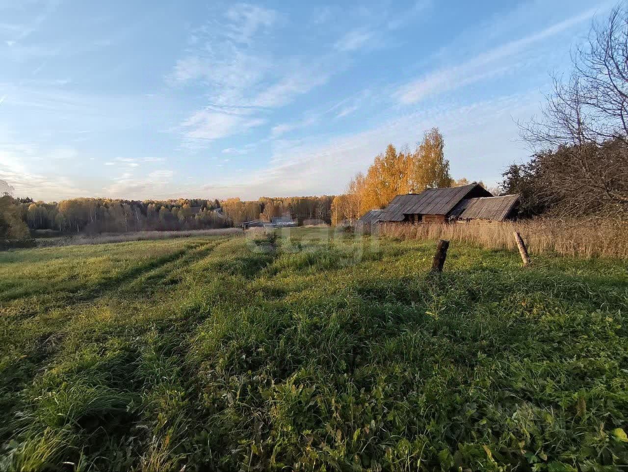 На участке — старые деревянные постройки и дом, подлежащие разборке. Земля ровная, сухая, с удобным рельефом для строительства.