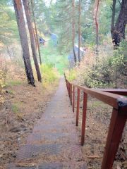 Верхний участок ровный, есть шикарный участок для строительства большого дома, особняка, базы отдыха среди берёзок, елей и сосен.