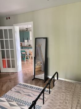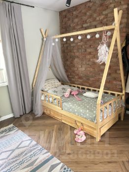 Просторная спальня с видом на лес, детская и гостиная-кухня, ванная.