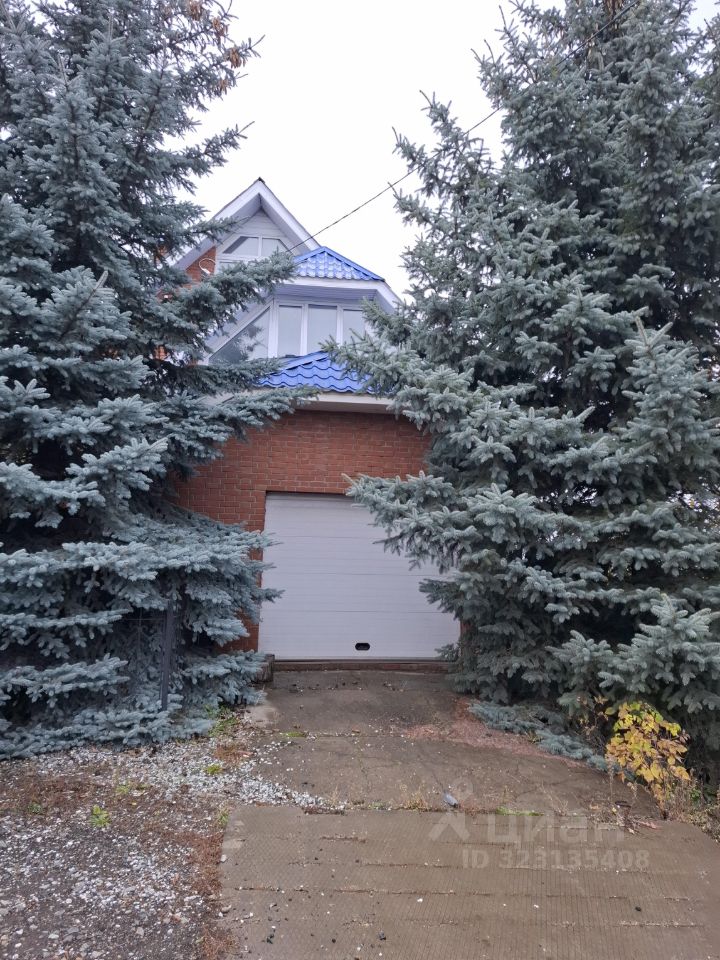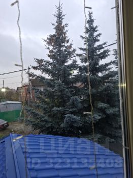 Перед домом растут огромные голубые ели, на участке есть туи, вишня, розы.