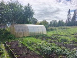 В огороде теплица.