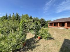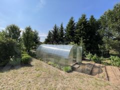 Участок 10 соток земли, растут плодовые деревья (яблони, груши, вишня, смородина, малина, виноград), установлена теплица 3м*6м, имеется большая постройка под одной крышей (гараж на две машины, баня, хозблок).