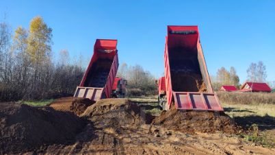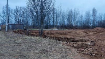Участок и прилегающая земля поднята песком (16 машин) и выровнена в 2024г. Под строительство фундамента оставлена 1 машина песка.