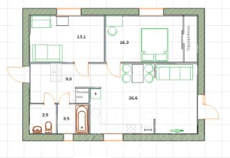 Площадь дома 72.8 кв.м..