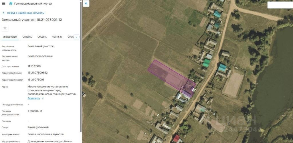 Земельный участок, площадь 4100 кв.м., категория земель: Земли населённых пунктов, адрес (местонахождение): Россия, Респ Удмуртская, р-н Увинский, д Сухая Видзя, ул Заречная, дом 16, кадастровый (условный) номер: 18:21:075001:12