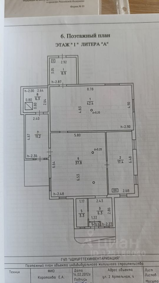 1 этаж: 125 м² (3 комнаты, 2 санузла, кухня). Комната 42м2 разделена на две.