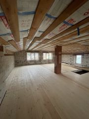 Дом возводили для себя, и частично до продажи еще будут проведены работы: теплые полы на кухне и в гостиной, санузел второго этажа, прихожая. Разводка отопления по второму этажу (двухтрубное, открытый монтаж), оклейка гипсокартоном первого этажа.