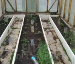 Из двух участков сделан один (8 соток) на них установлены 2 теплицы + хозяйственные постройки (второй дом, кладовая)