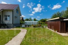 Участок благоустроен: скважина глубиной 67 метров обеспечивает автономное водоснабжение, по периметру установлен забор с двумя распашными воротами. Дополнительные удобства включают теплицу, хозяйственный блок и беседку, что делает территорию функциональной для отдыха или ведения подсобного хозяйства. Есть возможность подключения газа.