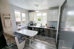 Все коммуникации подключены: электричество, холодное и горячее водоснабжение, канализация через выгребную яму объемом 4,5 м (3 кольца размеры 1,5х1,0 м). Отопление реализовано с помощью универсального твердотопливного котла, работающего на дровах, угле, пеллетах или электричестве.