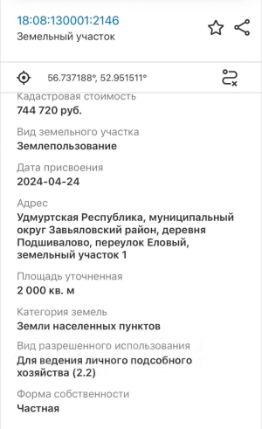Адрес: УР Завьяловский район, д. Подшивалово, переулок Еловый уч.1.