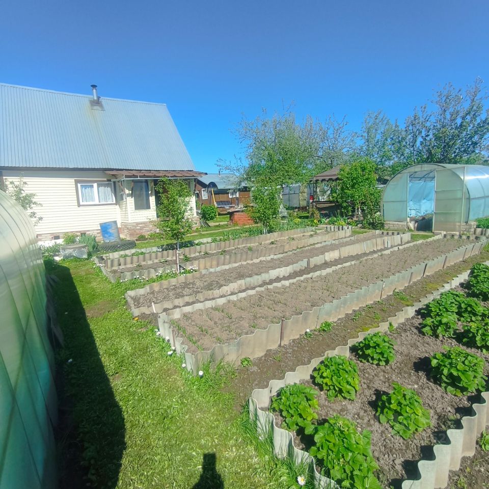 Продаётся огород с домом и баней. Летний водопровод по всему участку, вода заведена в дом и в баню. Газ - баллон. Отопление - печь. 4 теплицы, беседка, уличная печь, зона отдыха с качелью и лазелками для детей. Всё ухоженное. Фото - лето 2025г. Дом обшит сайдингом. Первый этаж - тёплый дом 4х4 и две веранды: спальня 4х2 и кухня 3х4. Второй этаж - мансарда: спальня 4х4 и комната 3х4. На втором этаже две кладовки. На участке баня топи-мойся с двумя верандами. Все веранды обшиты вагонкой; окна - пластик. Гараж пристроен к дому. Перед домом обустроена парковка под два автомобиля. Реальному покупателю торг.
