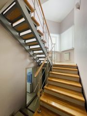 На второй этаже по лестнице, а там: 4 комнаты с выходом на просторную лоджию и огромный сан узел.