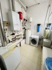 Вода - скважина в поселке через водонапорную башню; канализация - центральная; отопление - газовый котел в доме (теплые полы и радиаторы).