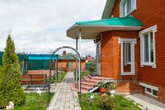 На территории усадьбы ждут вас баня-бассейн с санузлом и душем, закрытая беседка с зоной для шашлыков и дизайнерским кухонным гарнитуром из натурального дерева. Два теплицы, хозблоки, гараж с ямой, небольшой сад, газон и дорожки из брусчатки создают атмосферу уюта и комфорта на вашем участке.