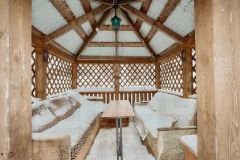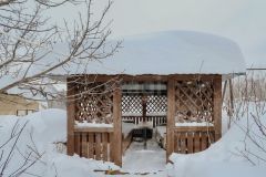 На участке расположена просторная стационарная беседка для отдыха и баня .