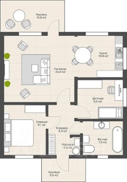 Доступны варианты домов с чистовой и предчистовой отделкой.
