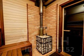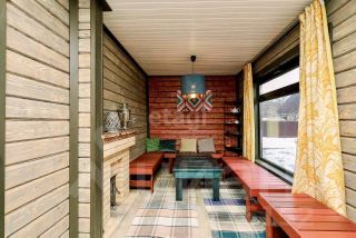 На территории располагается просторная баня с большой комнатой отдыха, а заблаговременно смонтированные теплые полы по всему периметру внушительно облегчают уход и продлевают срок службы дерева.