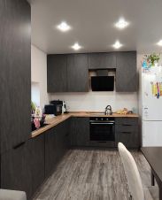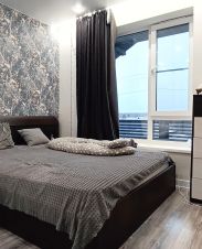 Окна пластиковые, на полу ламинат, потолки натяжные, обои под покраску.
