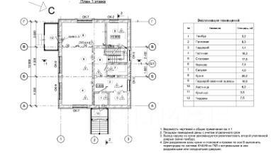 • 1 й этаж: кухня столовая с выходом на террасу, гостиная, гардеробная, санузел.