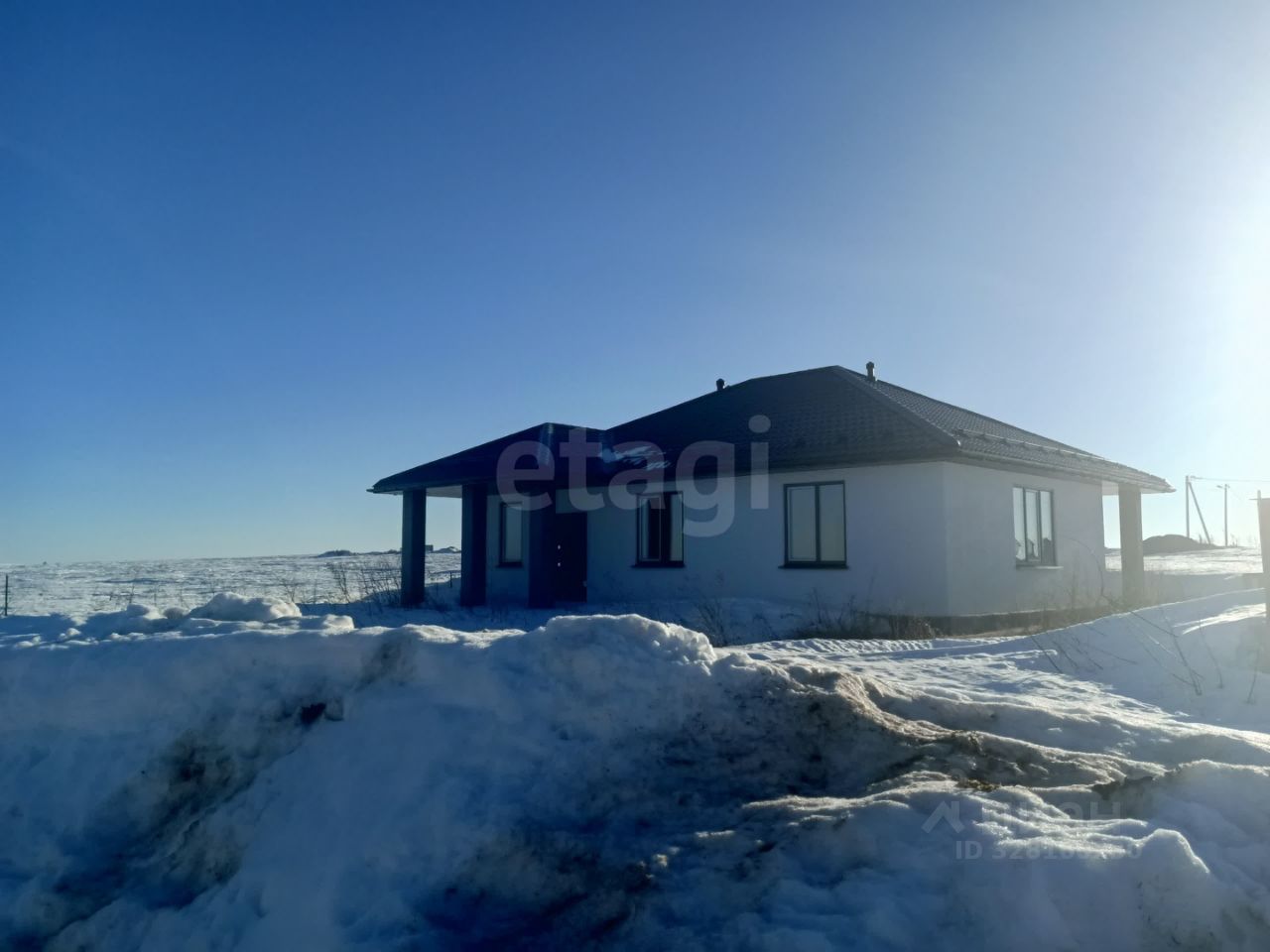 Дом построен из современного тёплого газоблока, фасад оштукатурен с финишной отделкой. Внутри — предчистовая стадия: выполнена разводка электрики, установлены пластиковые окна, проведены трубы для водоснабжения и канализации. Газовый стояк выведен на границу участка — подключение газового отопления и плиты займёт минимум времени и усилий.