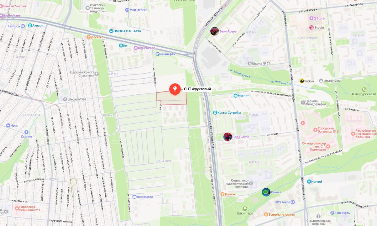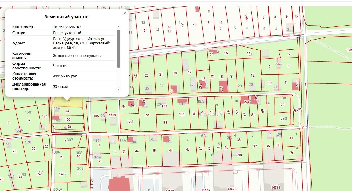 Продам земельный участок на СНТ Фруктовый, по адресу Респ. Удмуртская г. Ижевск ул. Васнецова, 18, СНТ "Фруктовый", дом уч. 41