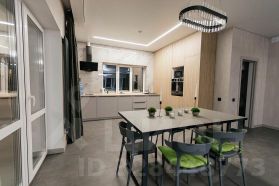 Продуманная кухня-гостиная с потолочными шкафами, огромный шкаф в прихожей