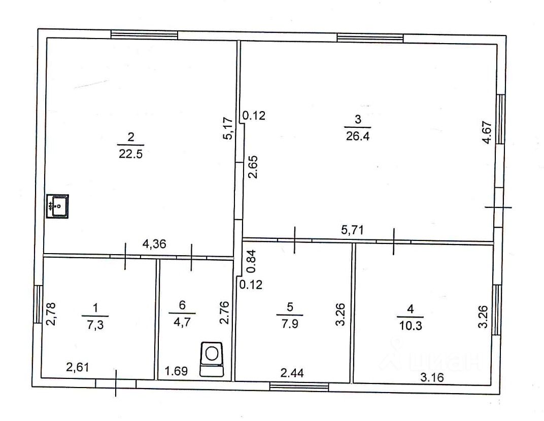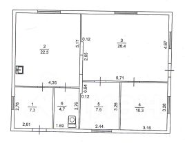 - имеет 2 спальни, родительская - 10,3м, детская - 7,9м; - большая гостиная - 26,4м;