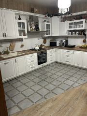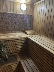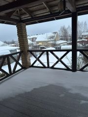 Планировка включает 5 комнат, просторную кухню-столовую с выходом на террасу, гардеробную и два санузла с теплыми полами. Выполнен качественный современный ремонт, установлены два кондиционера. На подземном этаже расположена баня на дровах с новой печью и теплым полом в моечной, а также гараж с автоматическими воротами и керамогранитным покрытием.